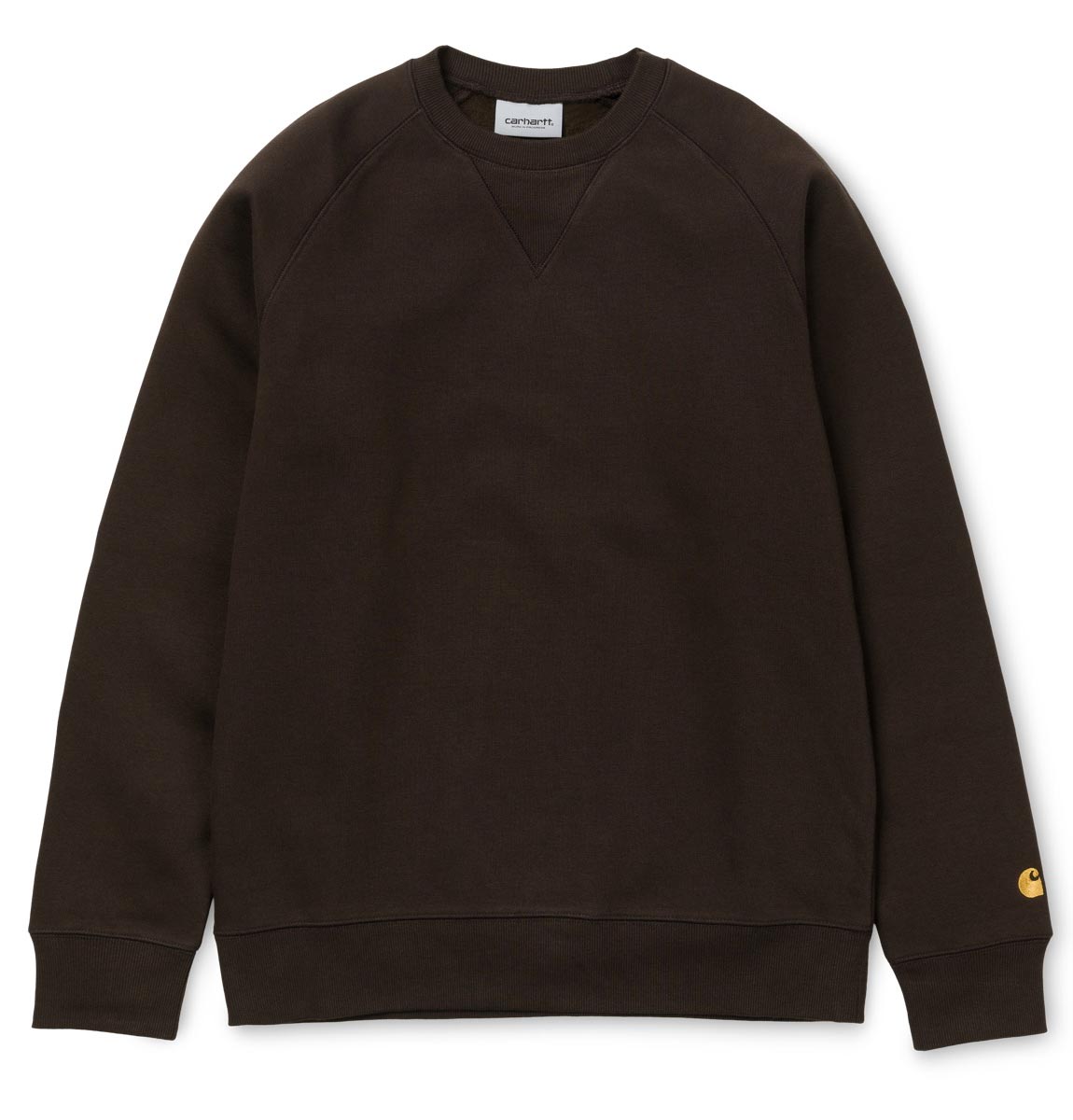 The Carhartt WIP Chase sweatshirt is made from a soft 12.9oz cotton mix and features an embroidered gold Carhartt logo on the cuff.
