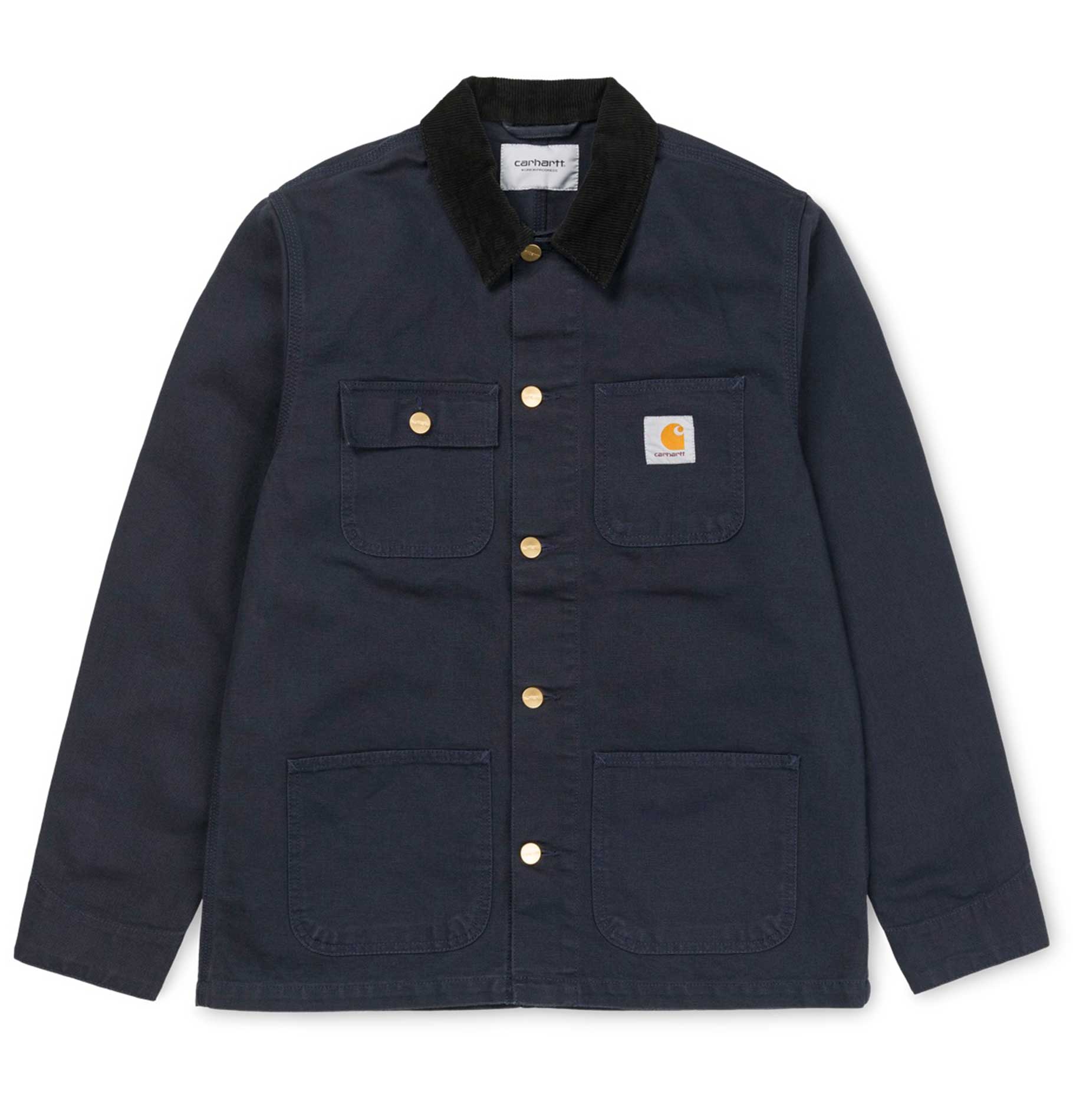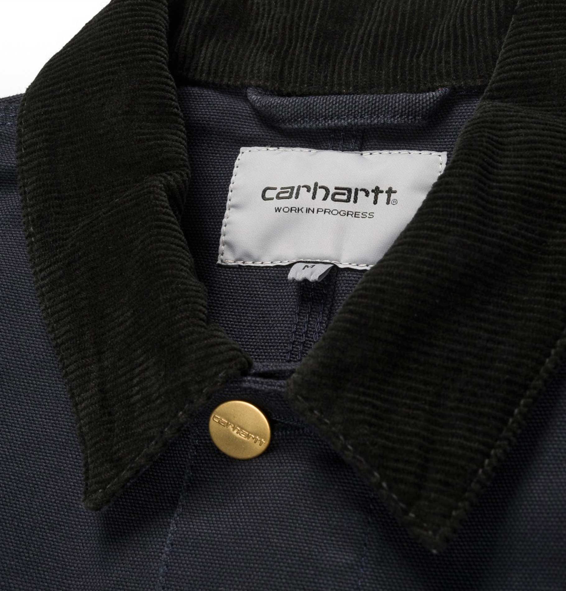 Carhartt Work in Progress's classic Michigan Chore coat has a workwear style with a durable "Dearborn" 12 oz canvas and a corduroy collar.