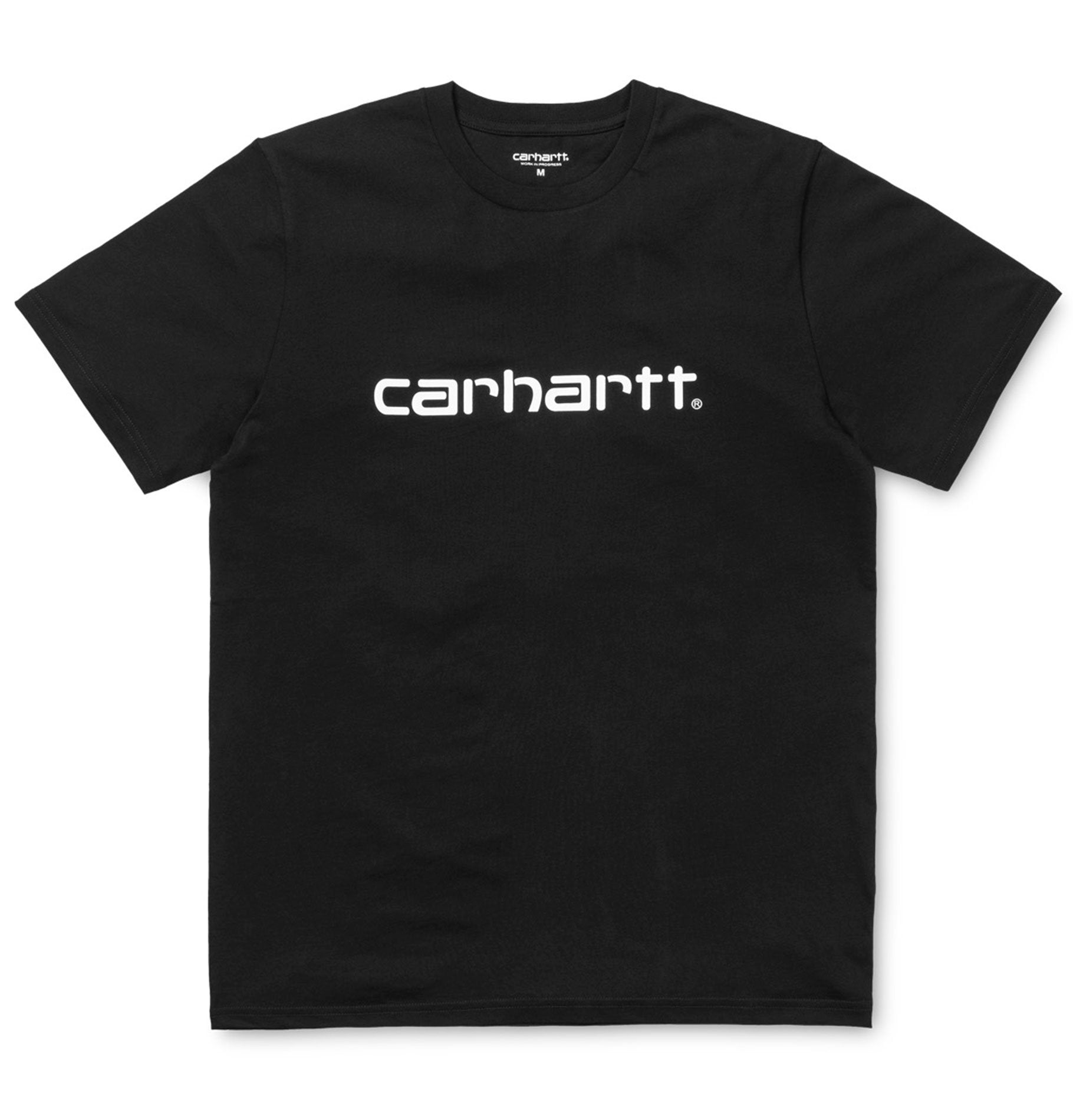 The straight and loose cut Carhartt Work in Progress S/S Script T-Shirt is made of 100% soft cotton jersey and offers a high level of comfort. Large Carhartt lettering decorates the chest of the t-shirt.