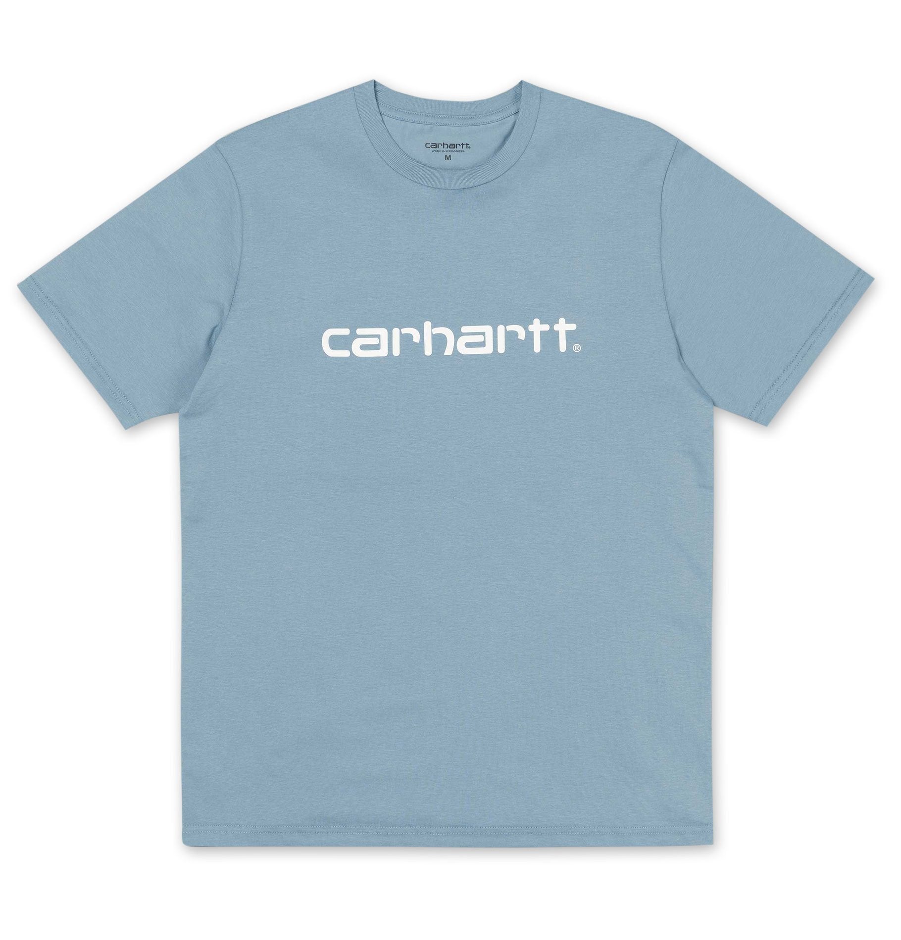 The straight and loose cut Carhartt Work in Progress S/S Script T-Shirt is made of 100% soft cotton jersey and offers a high level of comfort. Large Carhartt lettering decorates the chest of the t-shirt.