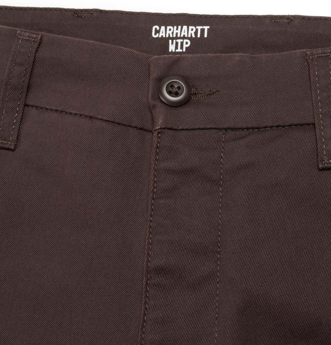 The Sid pants are a staple Carhartt WIP chino and have a slim, tapered fit with a low waist, as well as extra stitching at key stress points to avoid ripping. The fabric is a "Lamar" stretch twill, a cotton-poly blend designed for comfort and ease of movement.