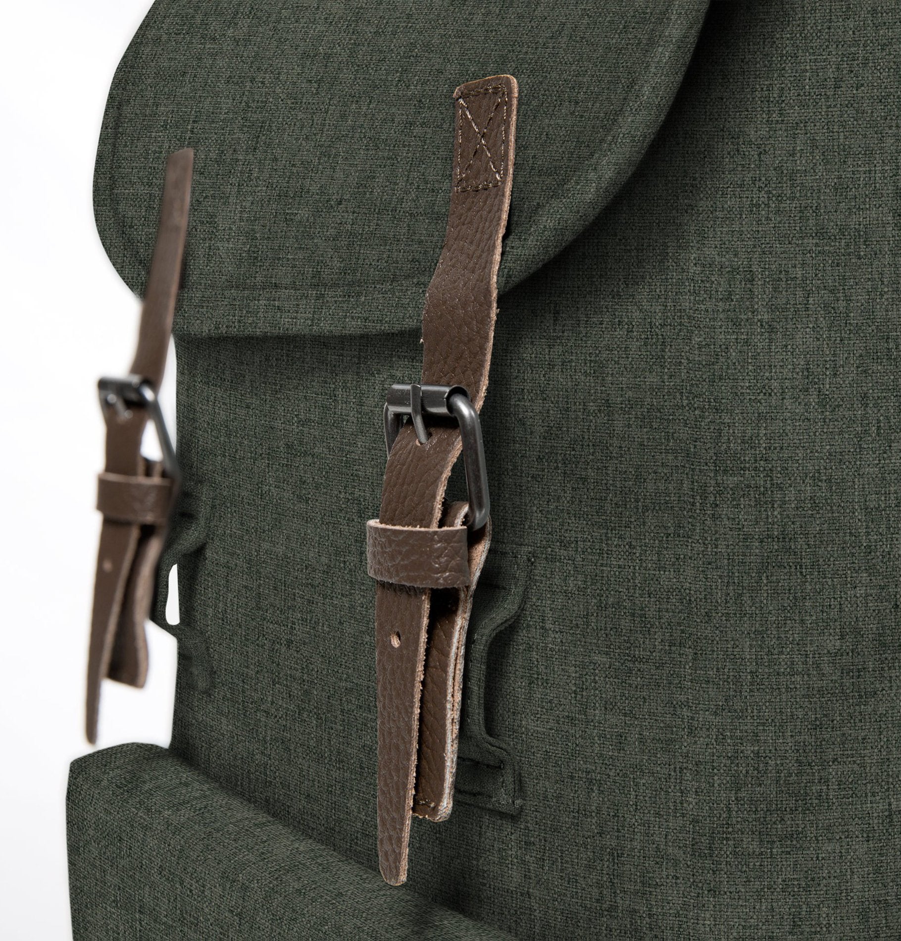 - Roomy main compartment features a rope and double buckle closure for a vintage look and a tight seal