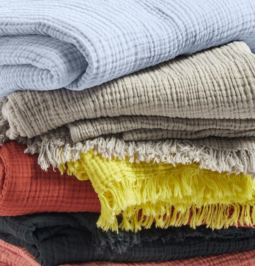 Crafted from a soft, lightweight cotton, the Crinkle Plaid features a crinkled texture and tasseled ends. Made from 100% cotton.